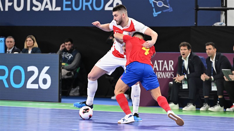 U prvom polufinalnom ogledu ovogodišnjeg Europskog prvenstva u futsalu, Španjolska je pobijedila reprezentaciju Hrvatske rezultatom 2:1.